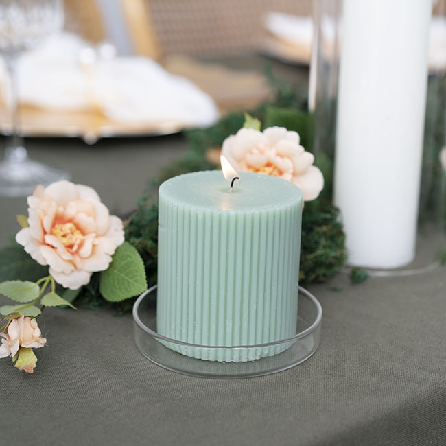 Use these glass plates to protect table surfaces at your next event from wax drips and pools of wax.
