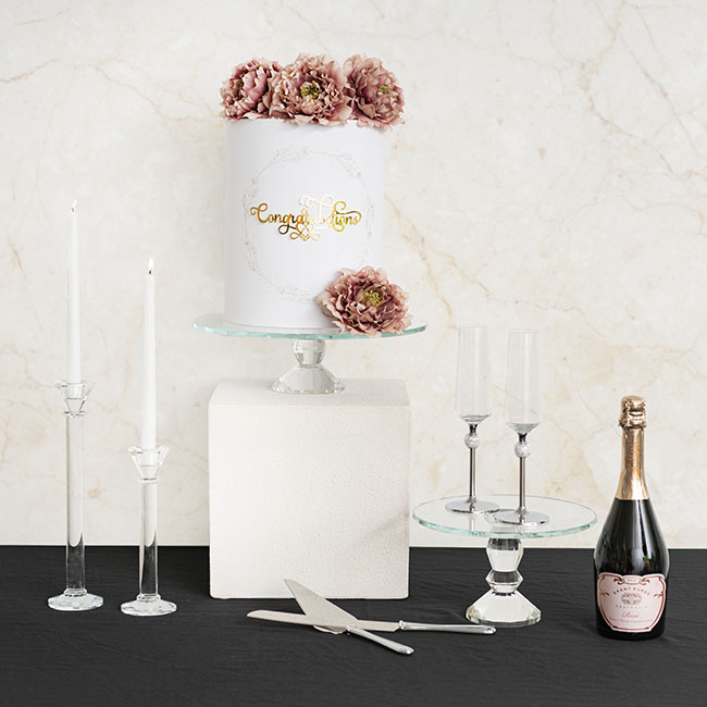 It measures 35cm in diameter and 10.5cm tall. The foot measures 11cm in diameter at the widest point. This cake stand is also available in a smaller size.