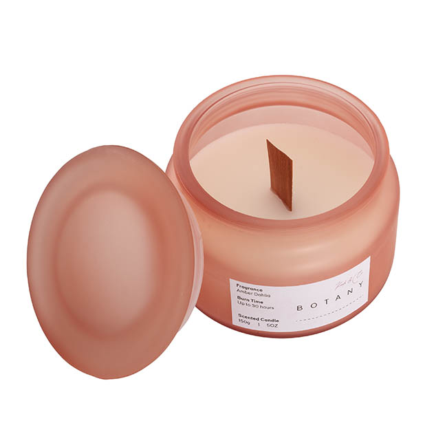 Our Amber Dahlia Botany Jar Candle now features a wooden wick that crackles as it burns, providing a unique auditory experience alongside its sophisticated floral scent. It combines the rich aroma of dahlias with warm amber undertones, perfect for enhancing any living space and making a luxurious element in gift hampers.