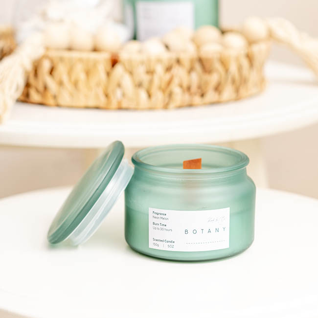 The Neon Melon Botany Jar Candle, part of our upgraded popular range, now includes a wooden wick that provides a special crackling sound, enhancing the sensory experience. This candle bursts with the bright, juicy scent of melon, making it perfect for adding a pop of color and freshness to your decor and an excellent addition to gift hampers.