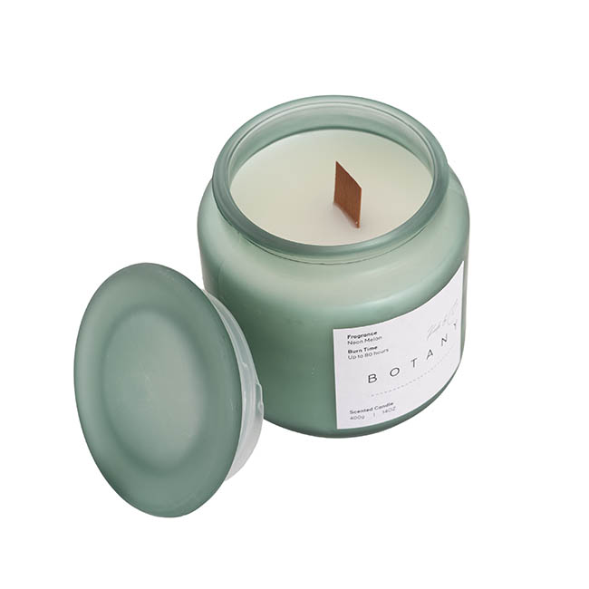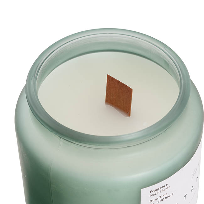 Our larger Neon Melon Botany Jar Candle has been enhanced with a wooden wick that crackles as it burns, adding a sensory dimension to its vibrant and refreshing melon scent. This candle is perfect for enlivening any room and serves as a colorful choice for an energetic addition to gift hampers.