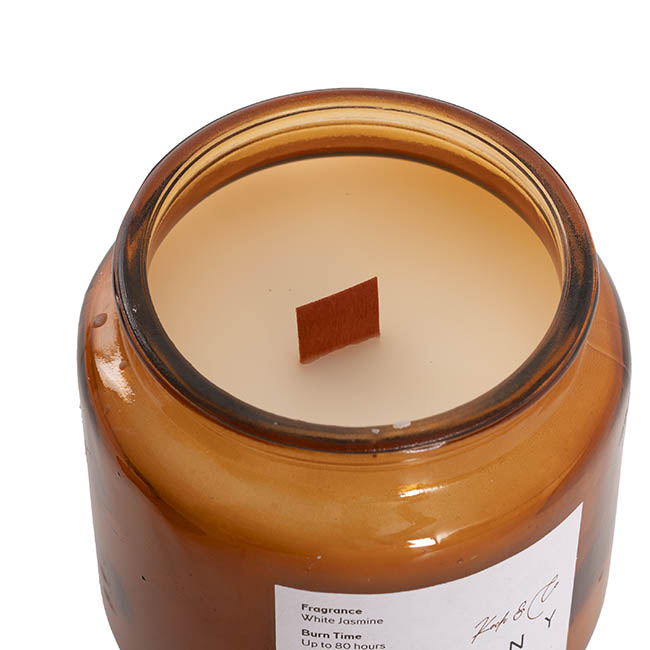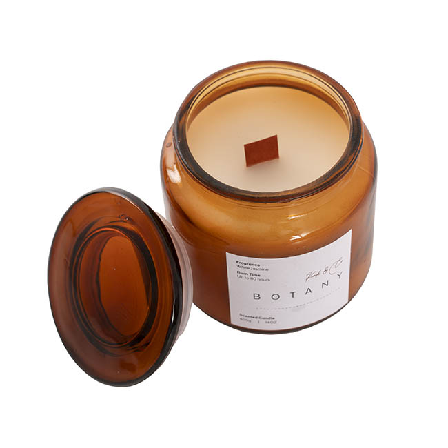 Our larger White Jasmine Botany Jar Candle offers a prolonged aromatic experience with the enchanting fragrance of jasmine flowers, now enhanced with a wooden wick that emits a calming crackling sound. This candle creates a soothing and romantic ambiance, ideal for those seeking a floral and uplifting atmosphere and perfect for enhancing home decor. It is an excellent choice for inclusion in gift hampers.
