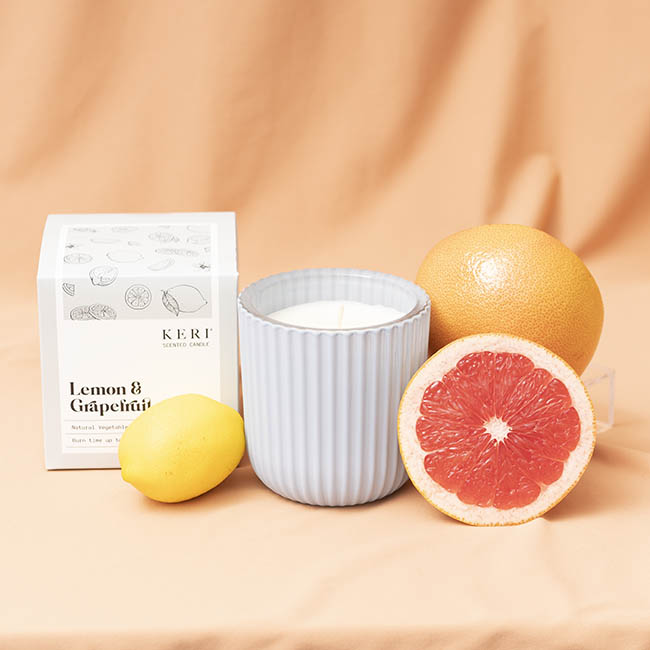 Refresh and invigorate your surroundings with the zesty aromas of lemon and grapefruit in our Evelyn III Lemon & Grapefruit scented candle. The sharp, citrus notes are balanced with a slight sweetness, making this candle a perfect choice for energizing any space. Handmade with natural soy blend wax and premium fragrances for a clean, effective burn.