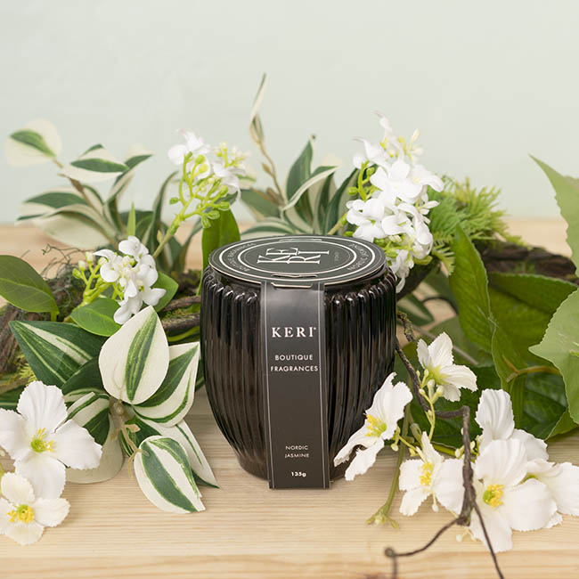 Add a touch of sophistication to your space with the Nordic Jasmine scented candle, housed in an elegant black glass jar. This 135g candle offers a soothing floral fragrance with a burn time of up to 30 hours, making it perfect for creating a serene atmosphere or gifting to a loved one.