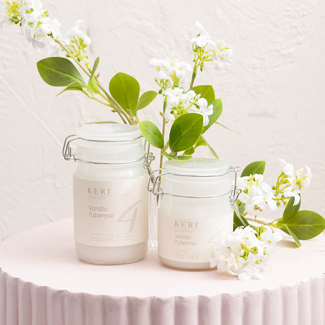 The Honey Jar Vanilla Tuberose Candle combines creamy vanilla and exotic tuberose in a natural soy blend wax. This elegant honey jar container is reusable for tealight candles, crafting your own candles, or for storing small items, adding functional value beyond its initial use. An excellent choice for Bomboniere or party favors, and a luxurious inclusion in gift hampers.