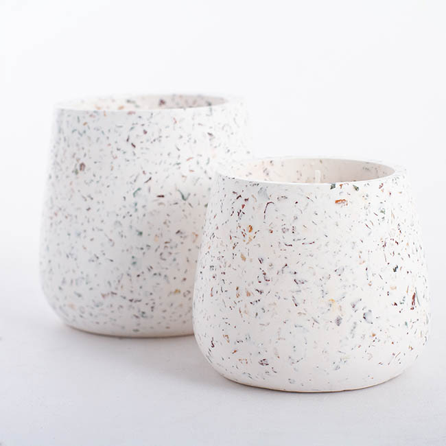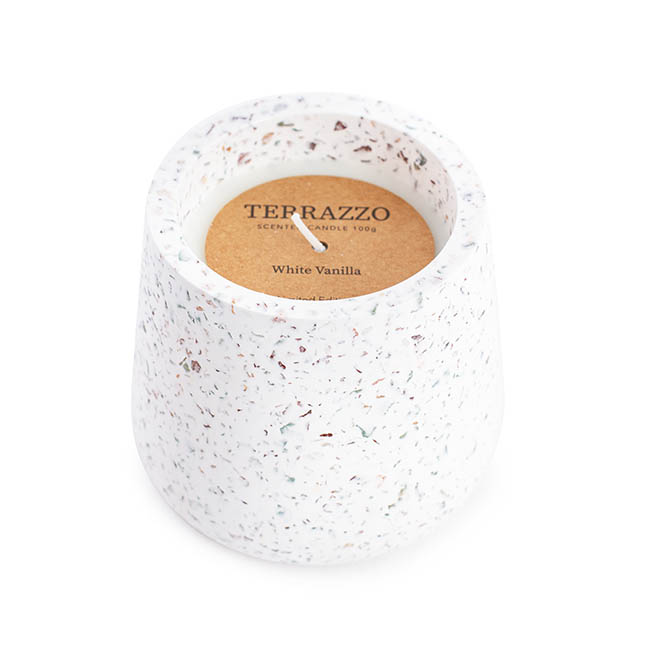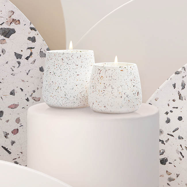 Embrace the terrazzo trend with this stylish Large, White Scented Terrazzo Candle in Vanilla. With its versatile beauty and textural quality, this limited-edition candle will complement nearly any home décor design.