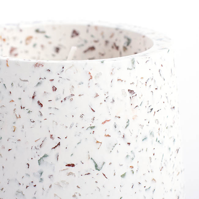 Embrace the terrazzo trend with this stylish Large, White Scented Terrazzo Candle in Vanilla. With its versatile beauty and textural quality, this limited-edition candle will complement nearly any home décor design.