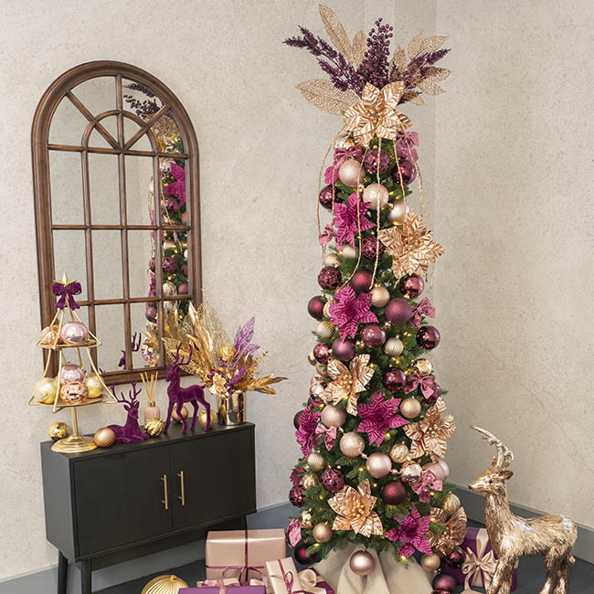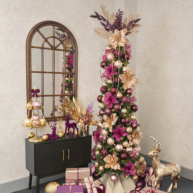 This fire-resistant pencil tree measures 71cm wide and 2.15m tall. It is sold individually.