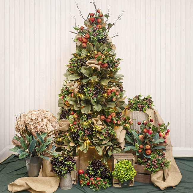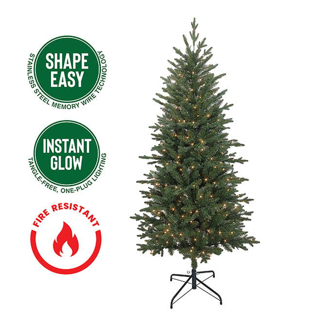 This narrow-shaped pine tree is a full tree which features over 1,800 branch tips. Most of these branch tips are wire-based, and some are Real Touch feel, with no wire base. Thanks to its narrow shape, this tree is a convenient, yet premium-looking option for more compact spaces.