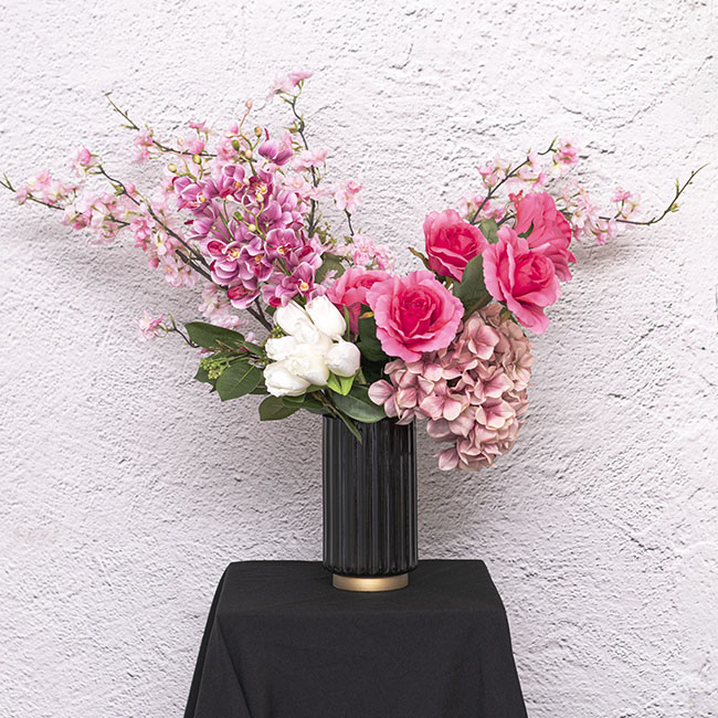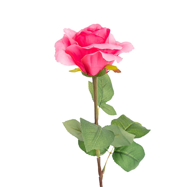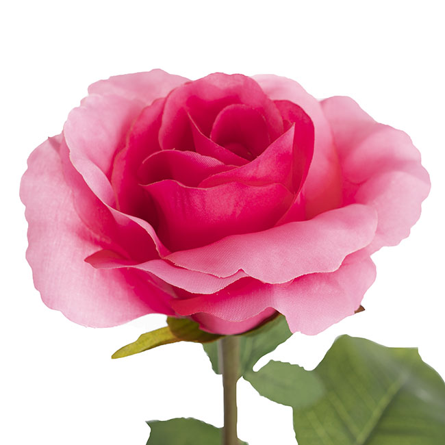 Our Open Siena artificial Silk Rose in Hot Pink measures 67cm in height with its open rose measuring 12cm. They look simply stunning on their own but can easily complement any floral arrangement. They have a fabric touch.