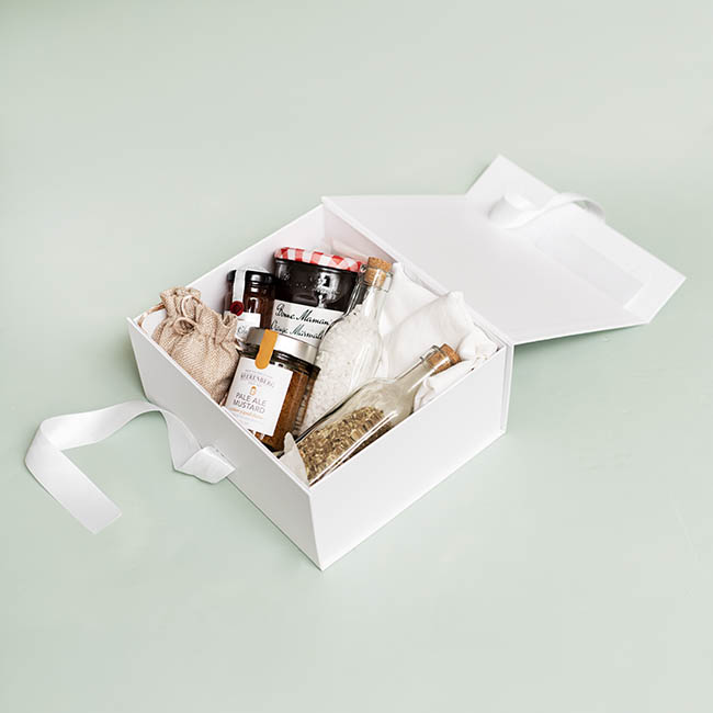 Easy to assemble and ship, these sturdy hamper boxes can be used for Christmas or holiday hampers, birthday presents, baby shower gifts, bridesmaid/groomsmen gifts, and more.
