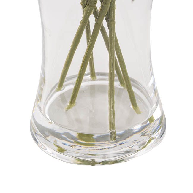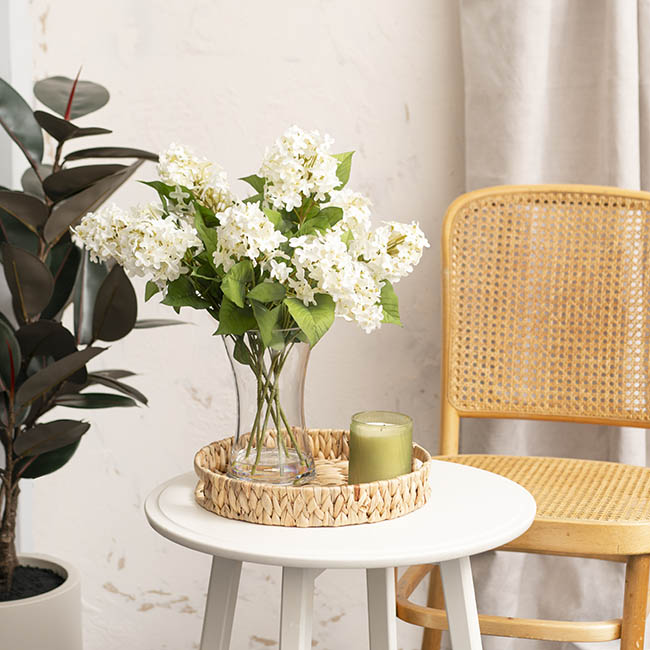 Add a touch of elegance to any space with the Sophie flower arrangement, featuring six lifelike white lilac stems artfully set in a clear glass vase. Each stem is secured in place with crystal-clear resin acrylic water for a realistic, lasting finish. The vase stands 19.5cm tall with a 12cm diameter, making it a perfect centrepiece or accent. Some styling is required once removed from the box to bring the arrangement to life.