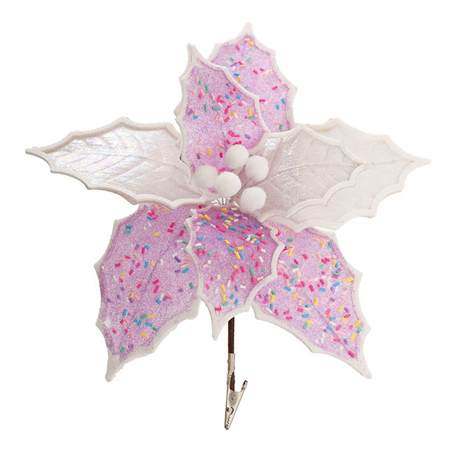 Sprinkled Poinsettia Clips Pack 2 Pastel Purple (24Dx10cmH)