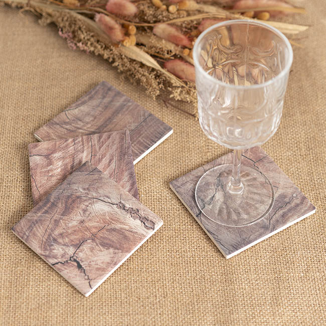 Each coaster measures 10cm by 10cm, with a 0.7cm thickness.