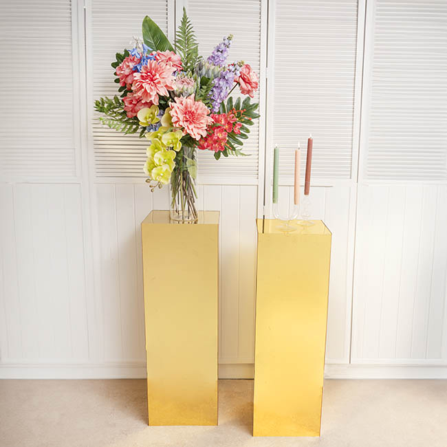 Use these plinths to showcase products, décor, or floral arrangements with a sleek and luxurious touch. These plinths can also be personalised with decorative stickers and non permanent markers like chalkbaord or whiteboard markers.