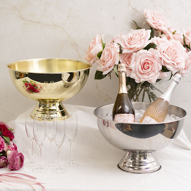 Holds at least 3 bottles of champagne and ice.