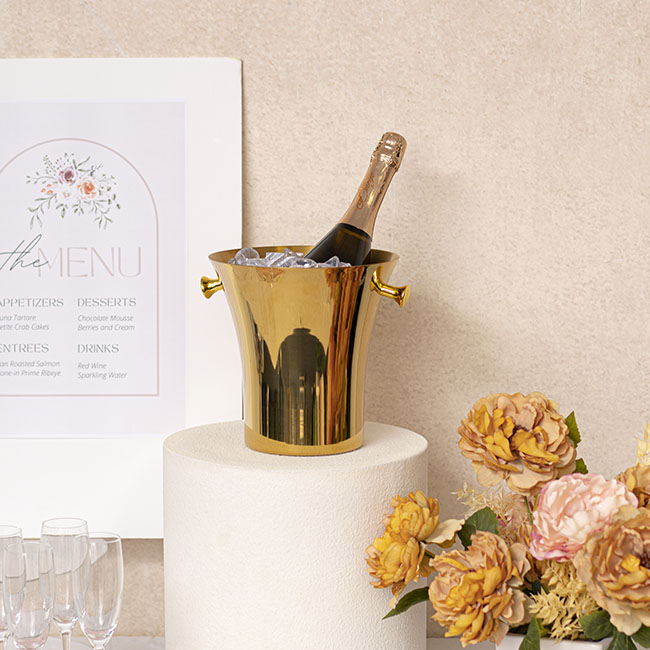 Comfortably holds 1 bottle of champagne and ice.