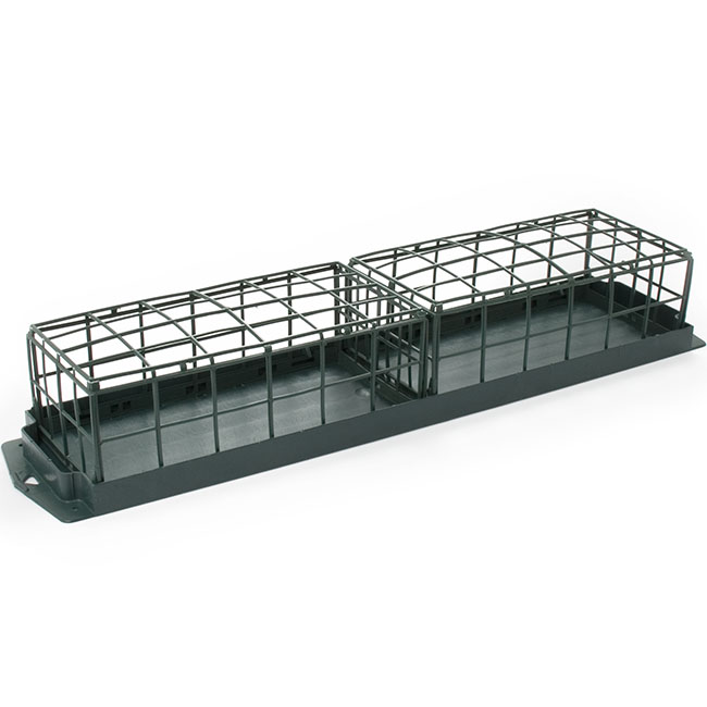 This double brick cage is the same size as 2 floral foam bricks. It has a solid plastic base enclosed in a sturdy plastic cage. The cage keeps the flower stems secure and helps keep your arrangement intact during transport and display. It is typically used for large floral sympathy tributes and spays. For all your Oasis, Strass, or other floral foam questions please see our related resources below.