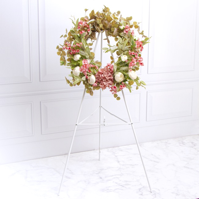 Extremely light and versatile collapsible tripod easel. This metal tube easel folds away to the size of a golf umbrella and is just as light. Suitable for funeral tributes, floral exhibitions and weddings. 122cm long when collapsed. Includes two hooks to support and hang a wreath.