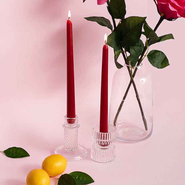 From a romantic dinner for two to wedding celebrations, our slightly tapered unscented dinner candles will add sophistication to any event. Fits in all Koch dinner candle holders. The candles stand 25cmH and have a 2cm diameter at the base. It features smokeless. Burn time is approx. 7-8 hours.