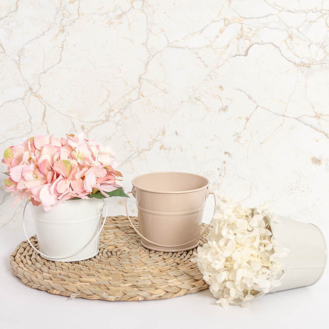 Tin Bucket with Handle White (12.5Dx10.5cmH)