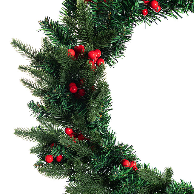 This wreath measures 60cm in diameter, it has 160 tips, and is sold individually.