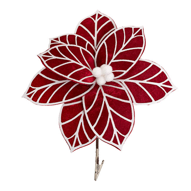 Perfect for adding volume and drama to your Christmas tree, wreath, garland, table display, and centrepiece, this faux poinsettia can also be used to decorate wrapped gifts.