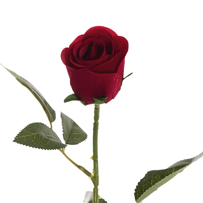 This rose stands 54cm tall. Its rose head measures 4.5cm wide and 5.5cm tall. This stem is sold individually.