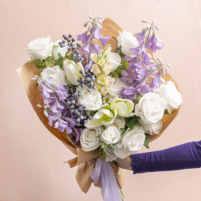 Perfect for creating full, dramatic floral arrangements or adding a touch of sophistication to any décor, this rose spray exudes timeless beauty and elegance.