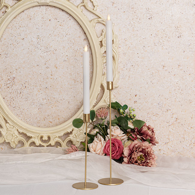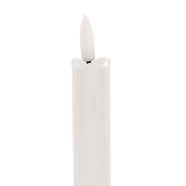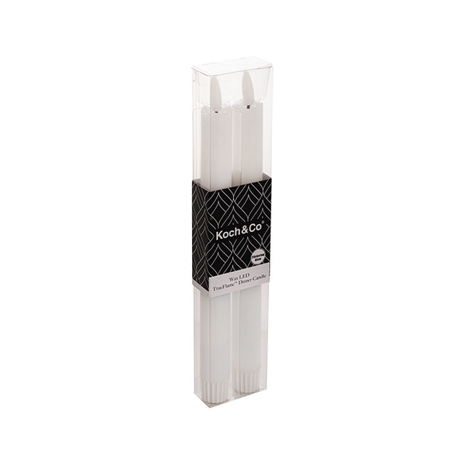 The candle stands 24cmH and have a 2.2cm diameter at the base. Available in a pack of 2. These candles require 2 x AAA batteries, which are not included. This candle is compatible with our Trueflame™ remote control.