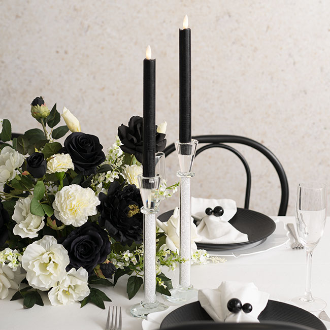 The candle stands 24cmH and have a 2.2cm diameter at the base. Available in a pack of 2.Colours: Black