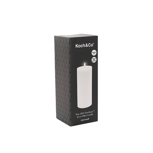 This candle is sold individually and measures 10cm in diameter and 25cm tall. It requires 2xAA batteries, which are not included.
