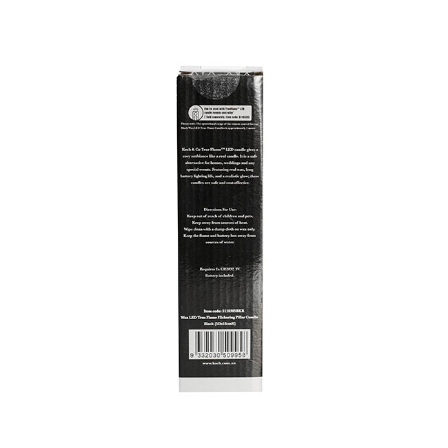 This Trueflame™ Flickering LED Black Pillar Candle gives a cosy ambiance with none of the messy wax drips, nor the fire hazard. Use this candle for a home and venue-safe alternative to traditional wax candles. This LED candle features a real wax finish, long battery life, and the realistic flameless glow that make the Trueflame™ range so popular.
