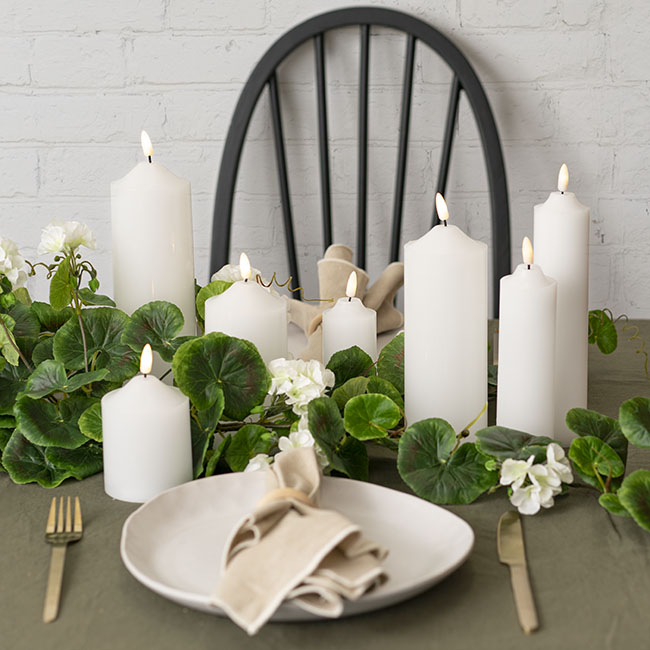 Be mesmerised by the magic of LED candles. This Trueflame™” Flickering LED White pillar candle gives a cosy ambiance like a real candle. It is a safe alternative to decorate your home, weddings and any special events. Featuring real wax, long battery lighting life and a realistic flameless glow.