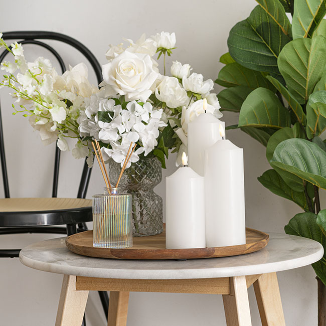 Be mesmerised by the magic of LED candles. This Trueflame™” Flickering LED White pillar candle gives a cosy ambiance like a real candle. It is a safe alternative to decorate your home, weddings and any special events. Featuring real wax, long battery lighting life and a realistic flameless glow.