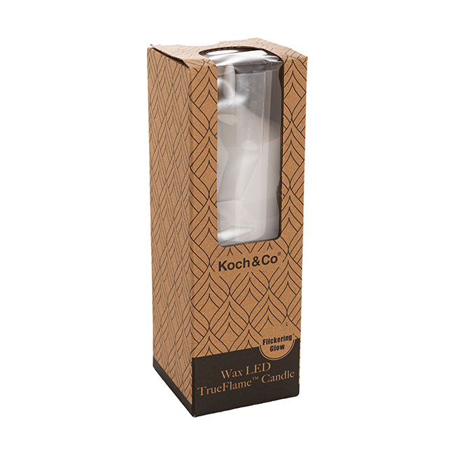 Be mesmerised by the magic of LED candles. Wax LED Trueflame™ Flickering Pillar Candle in White pillar candle gives a cosy ambience like a real candle. It is a safe alternative to decorate your home, weddings and any special events. This product is made with real wax (for realistic texture), has long battery lighting life and a realistic flameless glow.