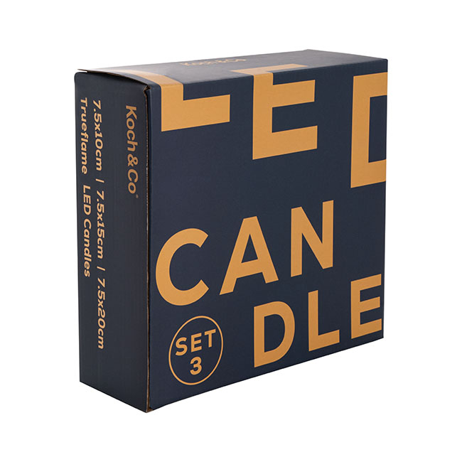 All three candles measure 7.5cm in diameter and 10cm, 15cm, and 20cm in height.