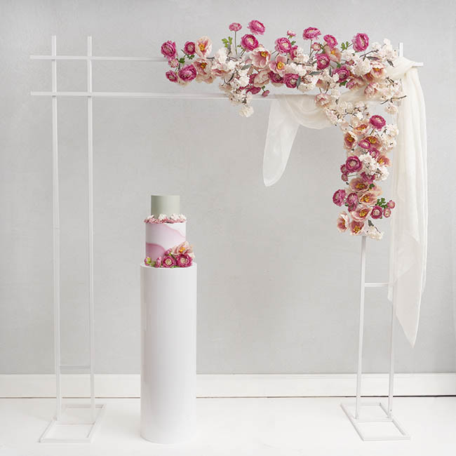 Measuring 2m wide and 2m tall, this arch can support up to 15-20kg of evenly distributed weight. Heavy weight concentrated in one area is not recommended. For added stability, weight bags can be placed on the base, ensuring your floral display stays secure throughout your celebration. This item is sold individually.