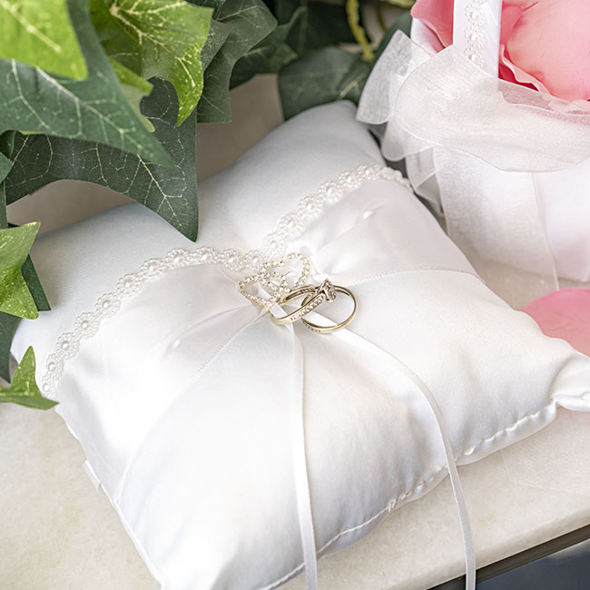 These soft, plush Wedding Ring Cushions are perfect for your page boy / ring bearer to walk down the aisle with. Beautifully detailed and designed with pearl and diamante, complete with white satin ribbon to hold your rings securely.