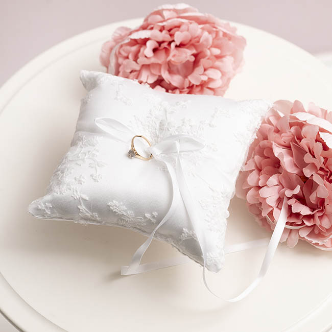 This elegant white square wedding ring pillow adds a touch of romance to your special day. Measuring 15cm by 15cm, it features delicate lace accents and a soft ribbon detail, creating a timeless and sophisticated look. Perfect for carrying your rings down the aisle with style and grace.