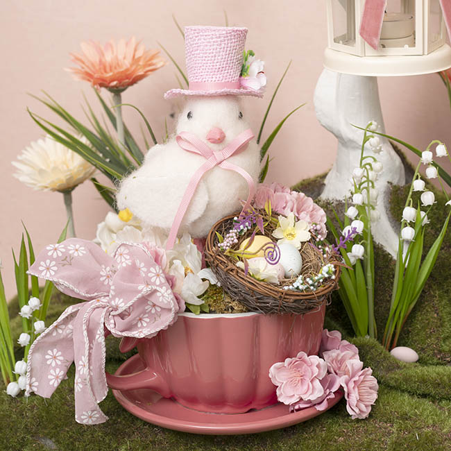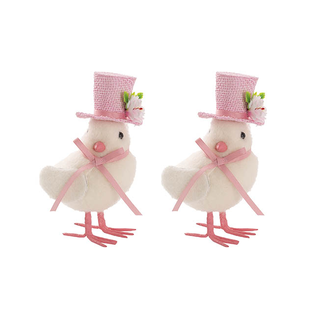 Bring a sweet touch of spring to your décor with this set of two standing white birds, each wearing an adorable pink hat. Measuring 18cm tall, 9cm wide, and 10cm long, these charming accents add a whimsical and elegant touch to Easter displays, centerpieces, or shelves.