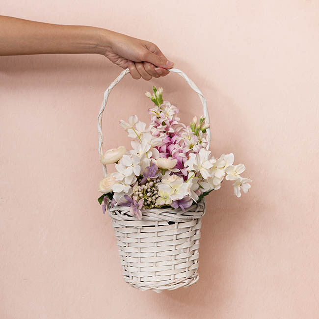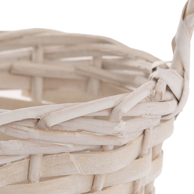 This basket measures 15cm in diameter and 15cm in height. The handle measures 24cm in height, with a total overall height of 40cm.