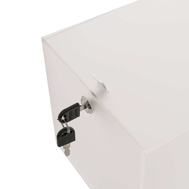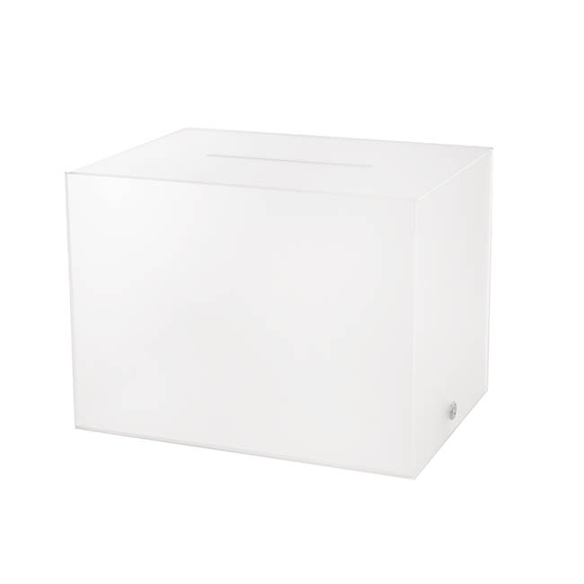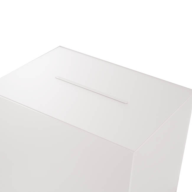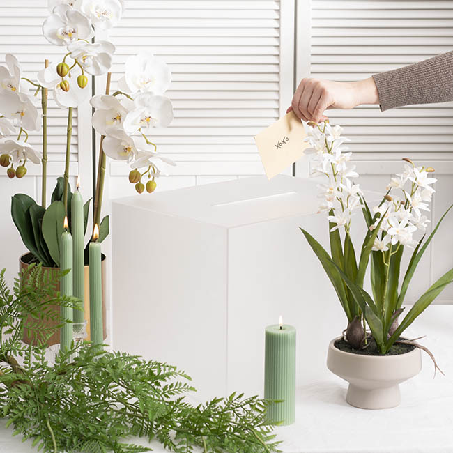 This wishing well measures 40cm in length, 30cm in width, and 30cm in height. Unlike other styles of wishing well, this model does not have a hinged lid at the top; this wishing well opens from the base. The envelope slit sits at the top of the wishing well and measures 1cm wide and 20cm long. This wishing well is sold individually.