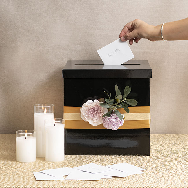 This product is suitable for use at weddings, engagements, birthdays, milestone anniversaries, or other functions such as retirements or corporate events. Personalise this product with special touches such as ribbons, bows, stickers or decals with names or dates. To secure the lid, we recommend attaching double-sided tape to the inside of the lid. Please note, this will render the product a single-use item.