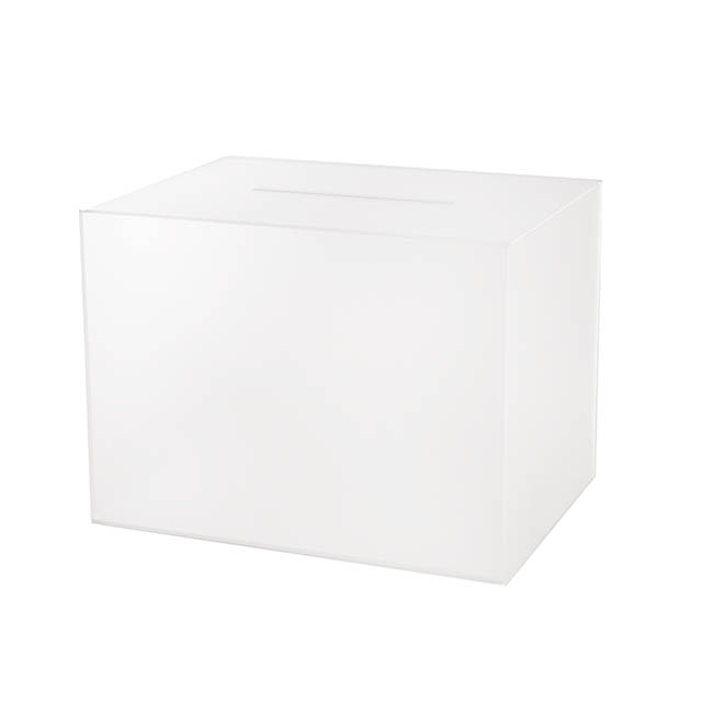 This wishing well measures 40cm in length, 30cm in width, and 30cm in height. Unlike other styles of wishing well, this model does not have a hinged lid at the top; this wishing well opens from the base. The envelope slit sits at the top of the wishing well and measures 1cm wide and 20cm long. This wishing well is sold individually.