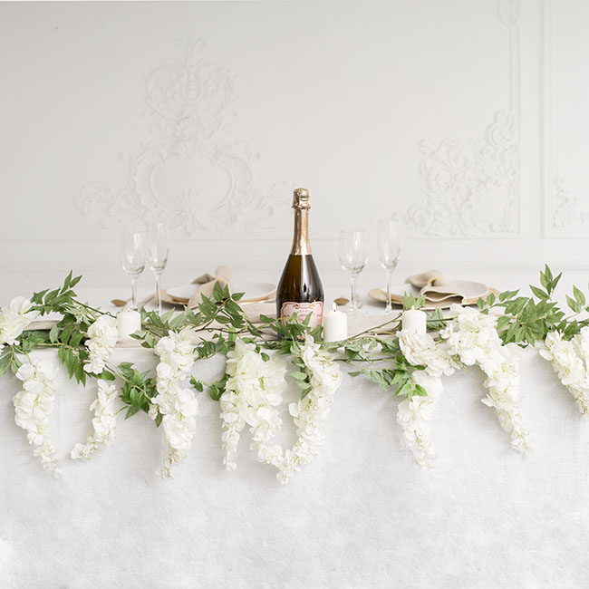 Ideal for hanging from the edges of tables and arbours, the large hanging clusters of flowers distinctive to this genus make wisteria a great fit as a statement flower for so many events