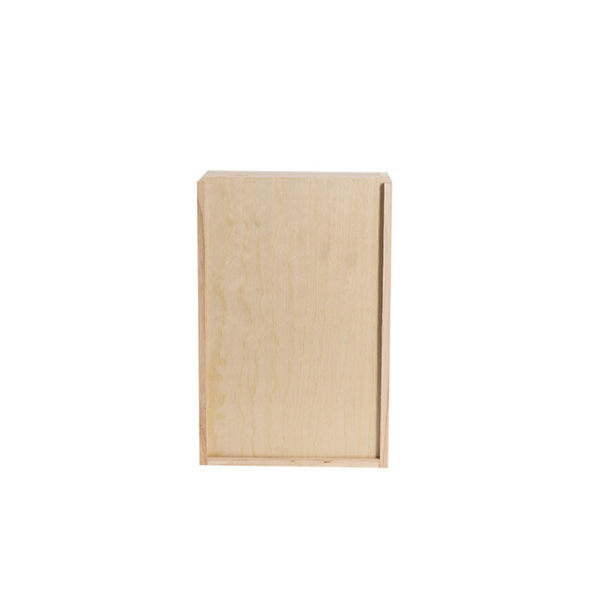 This box from 8mm thick wood with a natural finish. The sliding lid measures approx. 3mm thick.