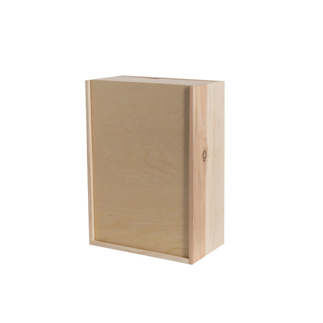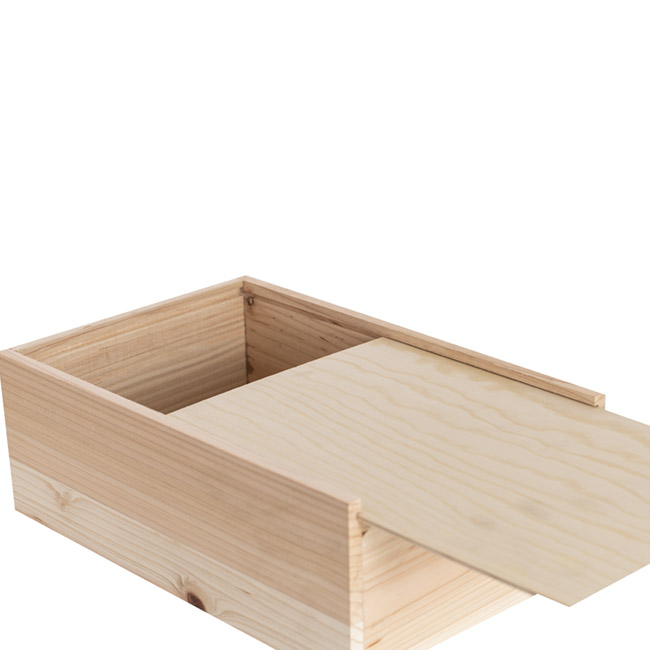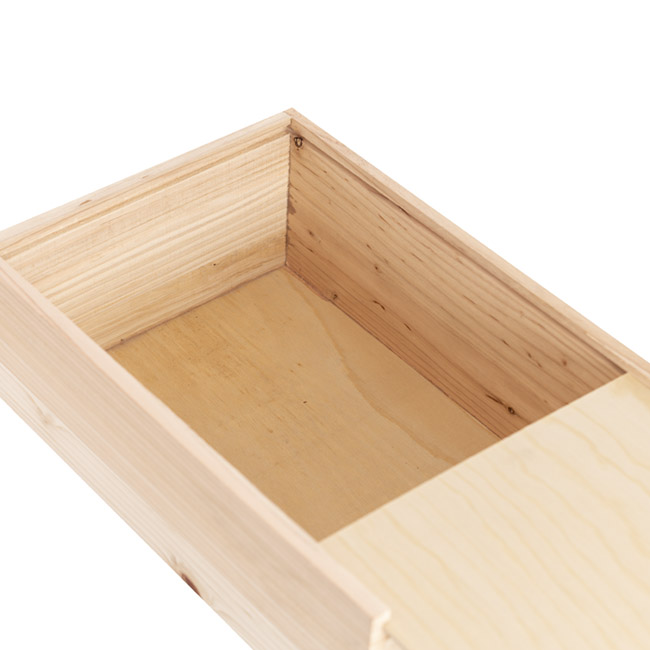This box from 8mm thick wood with a natural finish. The sliding lid measures approx. 3mm thick.