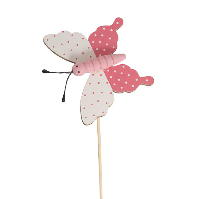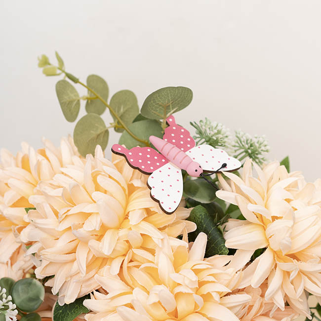Add a playful and charming touch to your displays with these pink wooden butterfly picks, measuring 32cm tall. Each butterfly is attached with a small spring for a fun boing effect, bringing movement and personality to floral arrangements, potted plants and gift styling. The butterfly itself measures 7cm wide and 6cm tall, and the picks are sold in packs of 12, making them perfect for both individual decorations and larger displays.