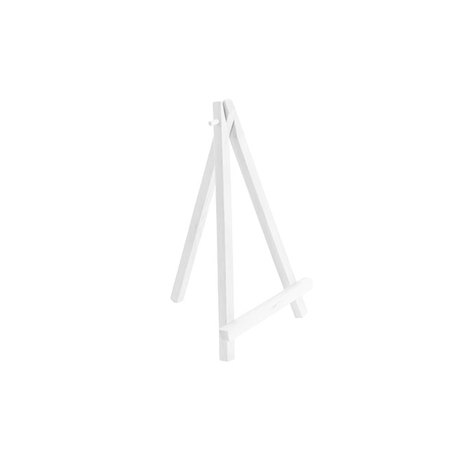 Made from white coloured wood. Each easel has three legs with a hinged top, has a horizontal bar allowing you to place a card.